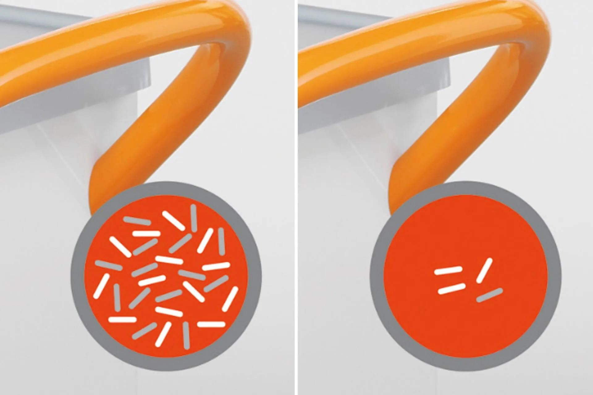 Het slimme ontwerp met gladde oppervlakken, verwijderbare laderails en antimicrobiële coating voorkomt besmetting met multiresistente bacteriën en maakt reiniging snel en effectief.